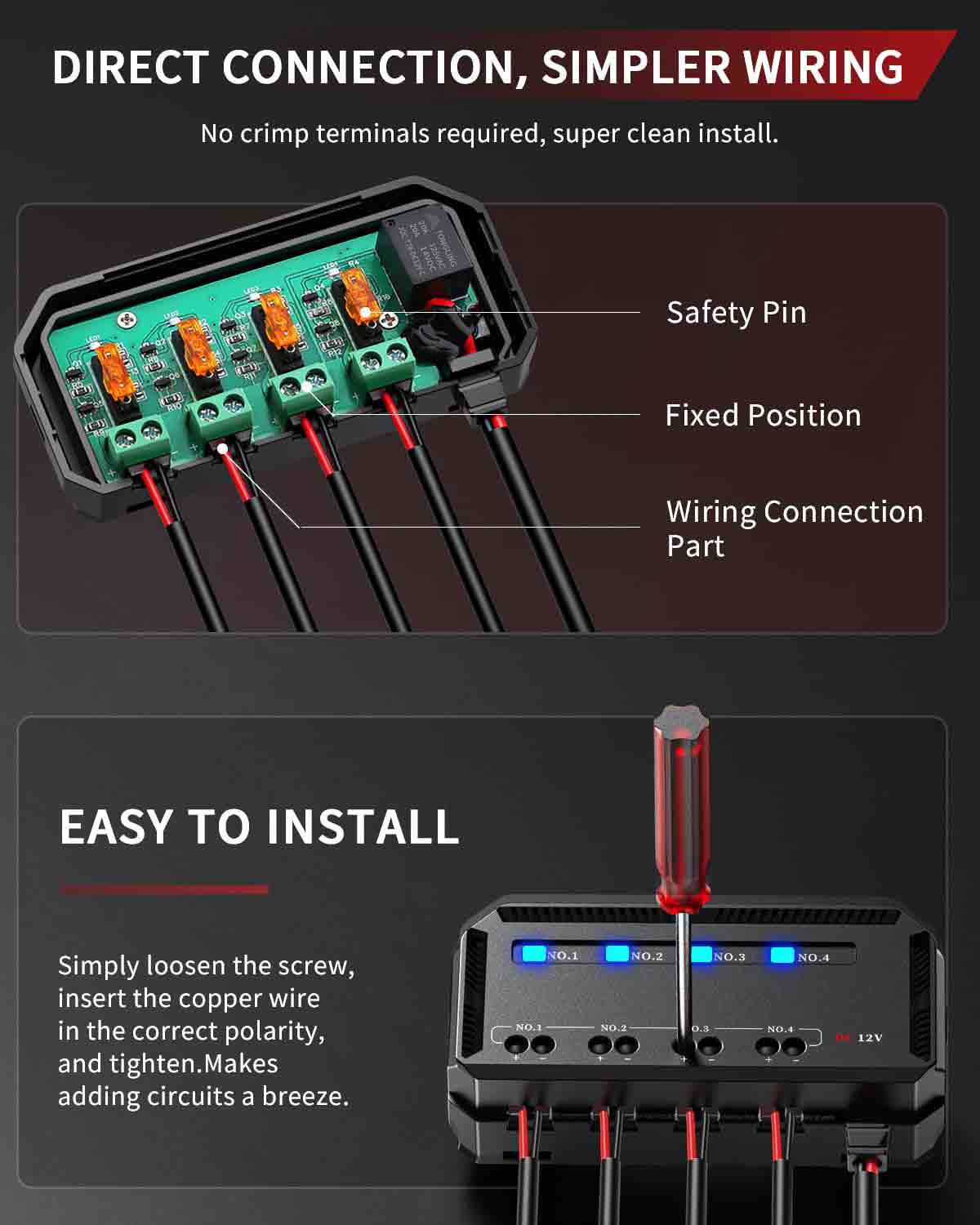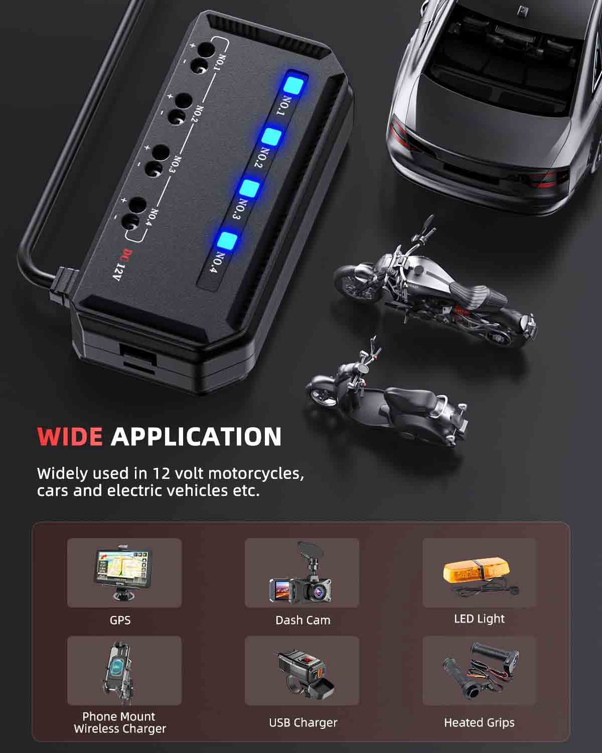 جعبه فیوز و رله سیم کشی سریع مناسب تمام وسایل نقلیه با برق 12 ولت با خروجی حداکثر 20 آمپر می باشد