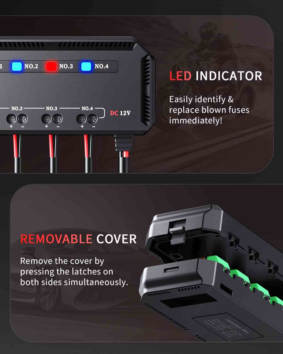 این جعبه فیوز دارای 4 خروجی 12 ولت می باشد