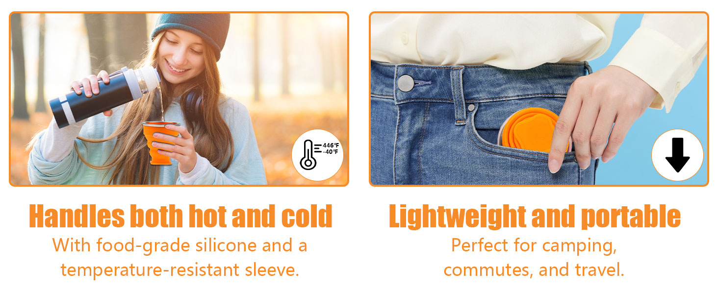 لیوان تاشو سیلیکونی به دلیل جنس سیلیکونی ای که دارد ، نشکن است و در حالت تا شده ، فضای بسیار کمی را اشغال میکند