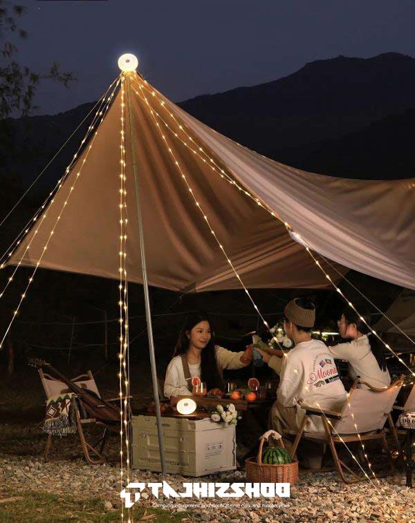 چراغ و ریسه شارژی کمپینگ برای استفاده در چادر کاربرد بالایی دارد چرا که قابلیت آویز شدن از سقف چادر دارد