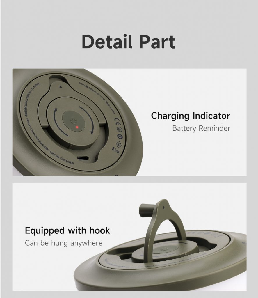 در قسمت پشت قلاب نصب به کار رفته تا به راحتی به سقف چادر و … متصل شود و استفاده از آن راحتتر باشد