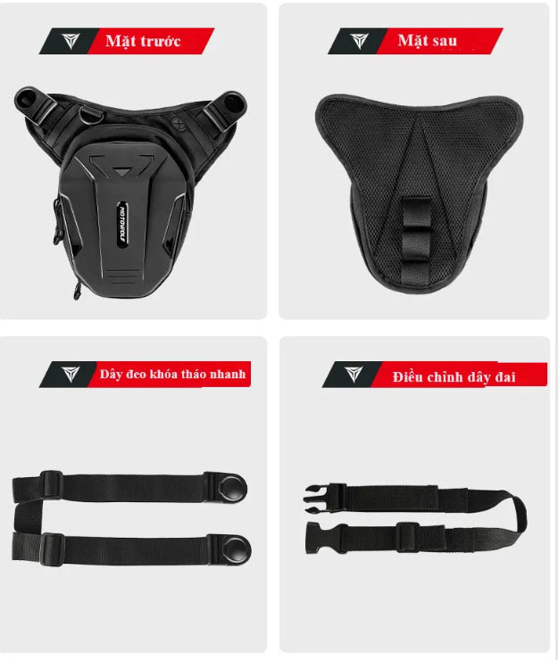 تمام لوازم مورد نیاز شما با راحتترین و نزدیک ترین دسترسی ، بر روی پا قرار میگیرد تا شمارا از کوله های پشتی و یا کیف کمری بی نیاز کند